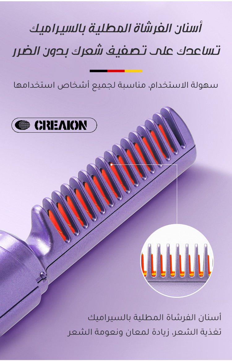 مشط تمليس الشعر المحمول، يسخن بسرعة، يُحل مشكلة الشعر المجعد ويجعله أكثر نعومة ولمعانًا، ويمكنك تصفيف شعرك بنفسك بسهولة. اشتريه الآن لتستمتعي بخصم كبير، الكمية محدودة.